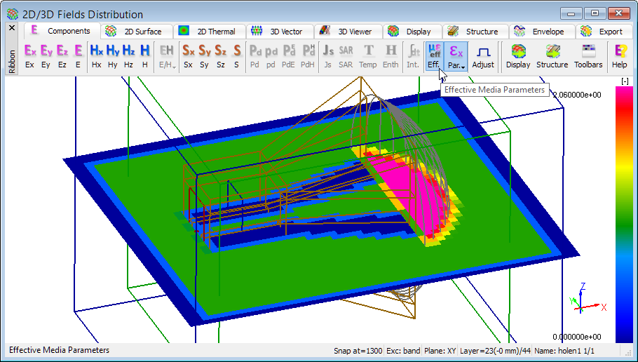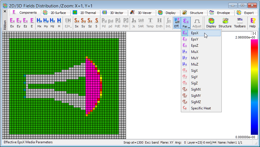effective relative permittivity, separately for each of three directions (EpsX, EpsY, EpsZ)