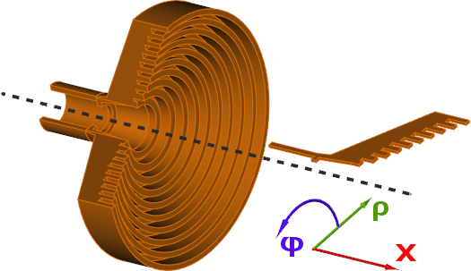 The total electromagnetic field in BOR (Bodies of Revolution) structures can be decomposed into a series of orthogonal modes, of different angular field dependence of the cos(nPhi) or sin(nPhi) type, where Phi is angular variable of the cylindrical coordinate system and n=0,1,2... Each n-mode is analysed separately in QuickWave V2D. Under such assumptions the numerical analysis can be conducted in two space dimensions, over one half of the long-section of the structure, with n predefined as a parameter. Let us note that the n-mode defined above should not be confused with one mode of a circular waveguide. For example, one QuickWave V2D analysis with n=1 takes into account a composition of all circular waveguide modes TE1k and TM1m where k and m are arbitrary natural numbers.