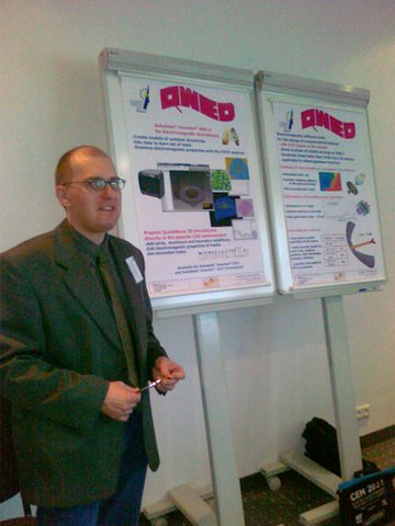 W. Gwarek (Warsaw University of Technology) and M. Olszewska (QWED), "Improvement of accuracy of extraction of radiation patterns from FDTD modelling of axisymmetrical antennas" (P1-04)