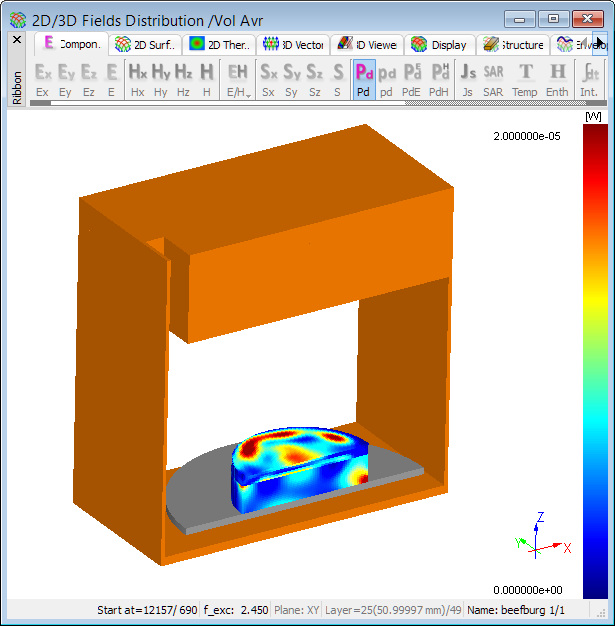 Time-average dissipated power on the beef burger at 2.46 GHz.