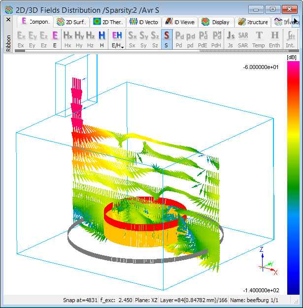 Time-average Poynting vector in the middle of the oven at 2.46 GHz.
