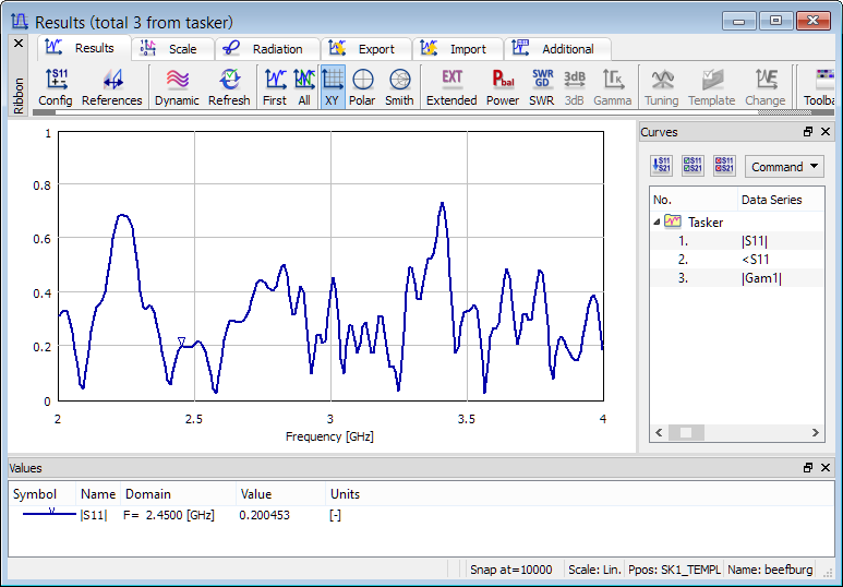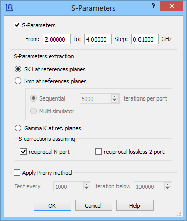 The S-Parameters postprocessing is set from 2 GHz to 4 GHz with the frequency step of 0.01 GHz.