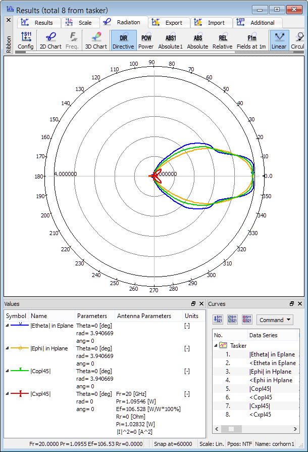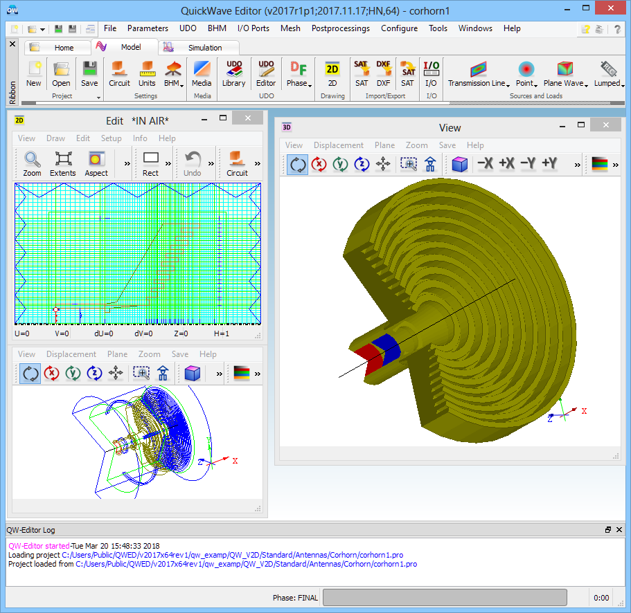 Corrugated horn antenna (V2D BOR) project in QW-Editor.
