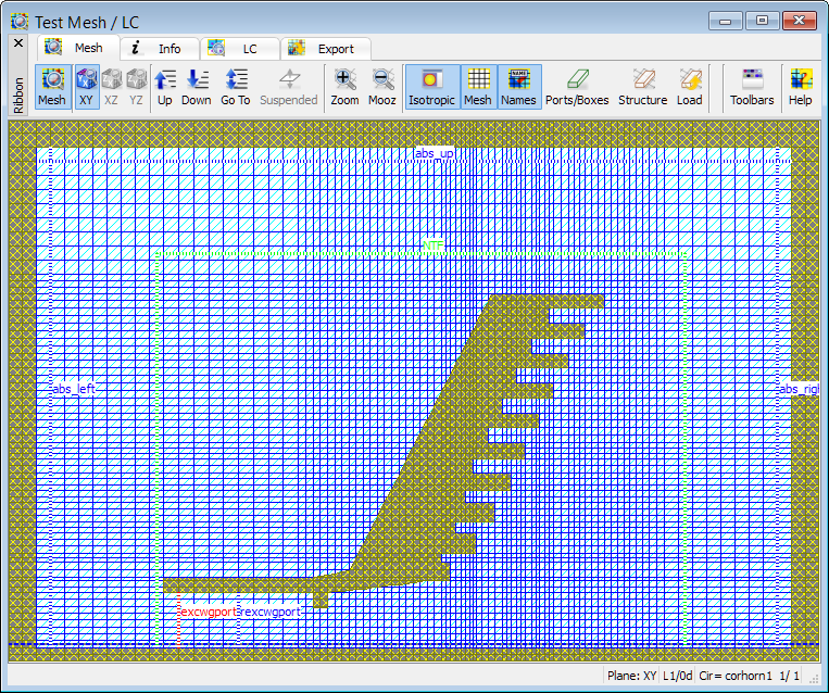 Effective FDTD mesh display - only one layer of a half of structure’s long-section.