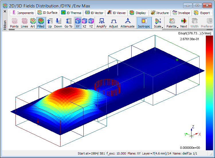 Distribution of time-maximum envelope of total E field at 10 GHz.