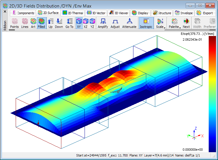 Distribution of time-maximum envelope of total E field at 11.7 GHz.