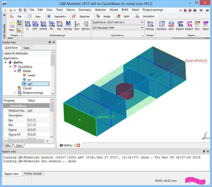 Rectangular waveguide filter with dielectric resonator project in QW-Modeller.