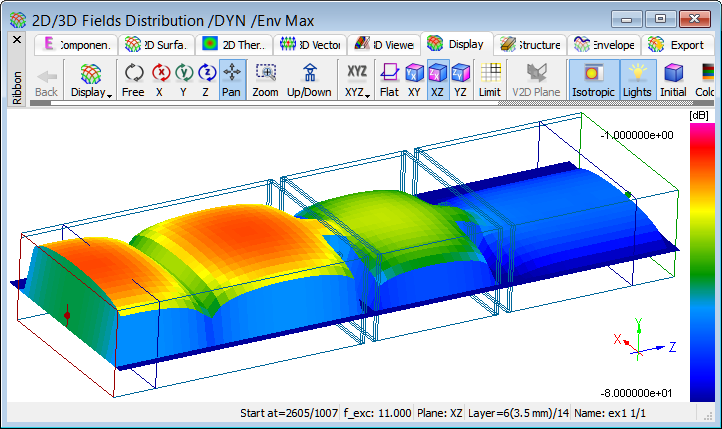 Distribution of time-maximum envelope of Ez field component at 11 GHz.