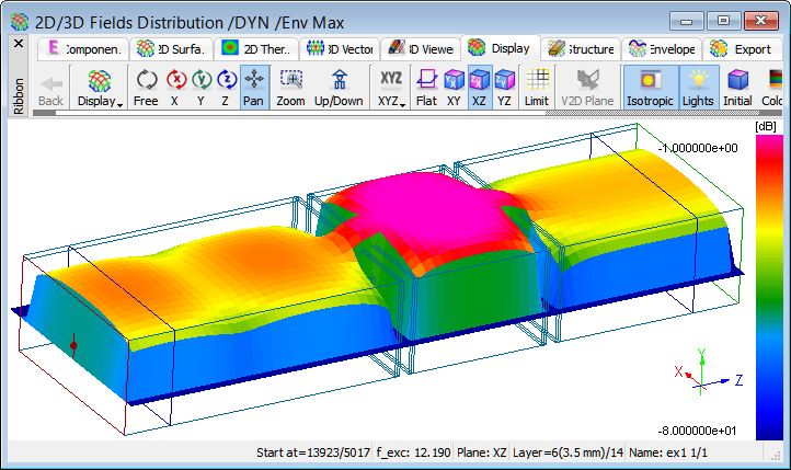 Distribution of time-maximum envelope of Ez field component at 12.19 GHz.