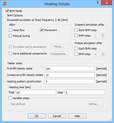 Heating Details dialogue with Basic Heating Module settings.