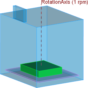 Microwave domestic oven with vertical feed, rectangular shelf, and rectangular food presenting the BHM regime with load rotation. The oven’s inside dimensions are 205 mm, 238 mm, and 228 mm in X, Y, Z directions respectively. Its vertical feeding waveguide dimensions are 12 mm, 70 mm, and 48 mm in X, Y, Z directions respectively. The rectangular shelf dimensions are 178 mm, 214 mm, and 4 mm in X, Y, Z directions respectively. The food dimensions are 101 mm, 120 mm, and 24 mm in X, Y, Z directions respectively. The rotation axis is located at X=-101.5mm and Y=-2mm coordinates.