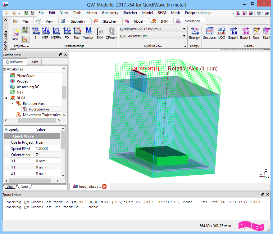 Microwave domestic oven with heating processing and load rotation in QW-Modeller.