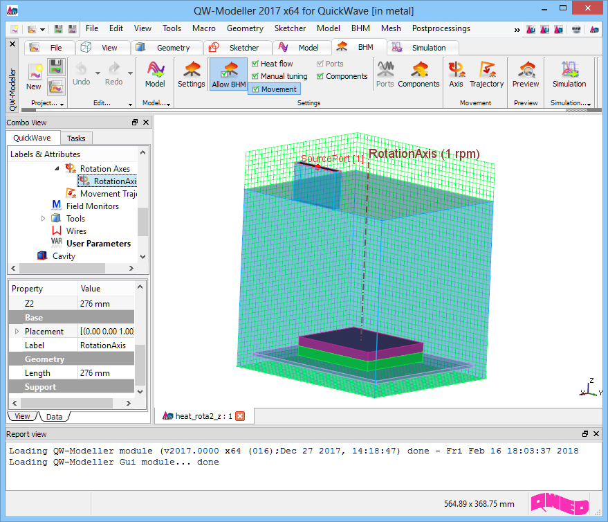 Microwave domestic oven with heating processing and two loads rotation in QW-Modeller.