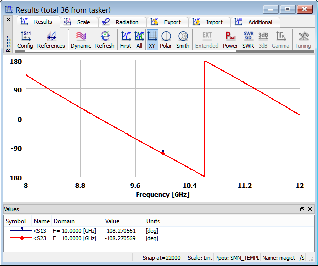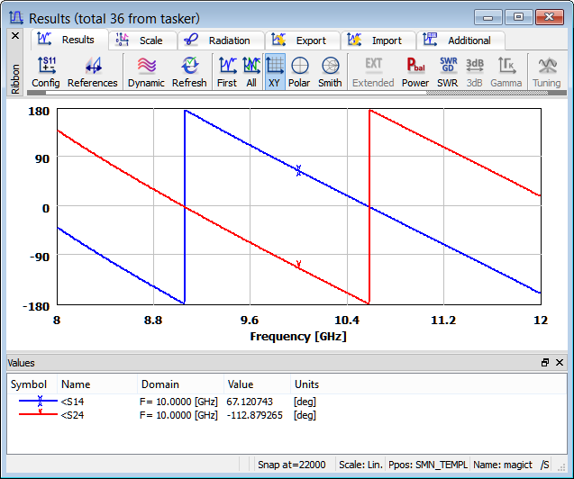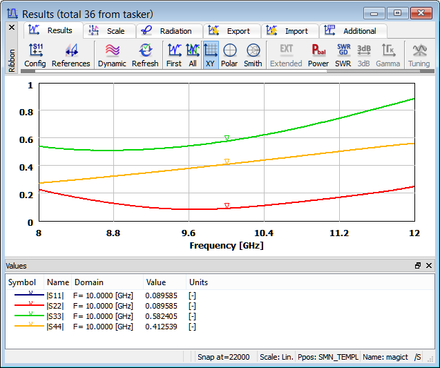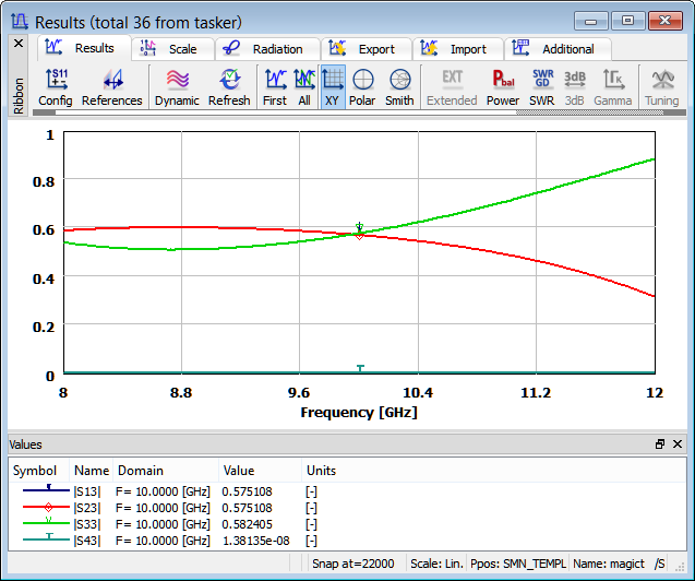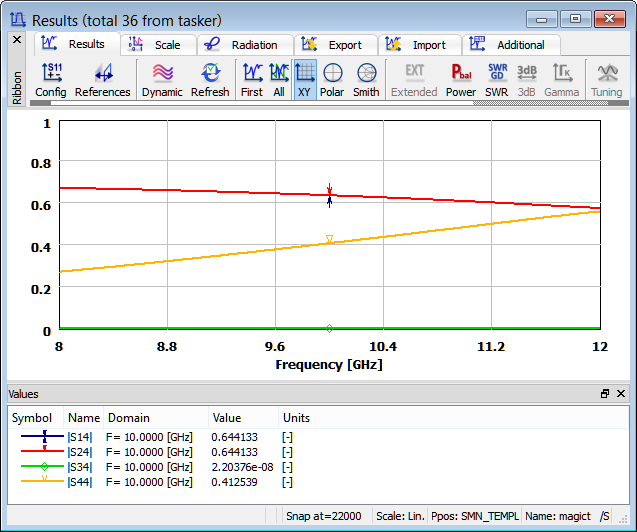 The S-Parameters postprocessing is set from 8 GHz to 12 GHz with the frequency step of 0.01 GHz.