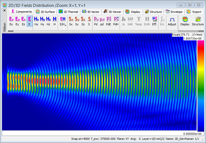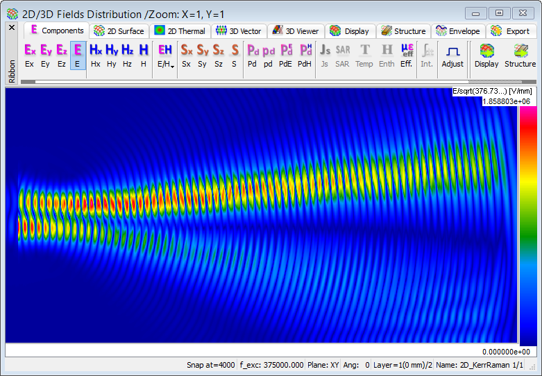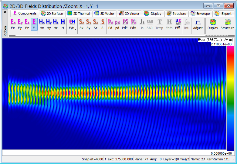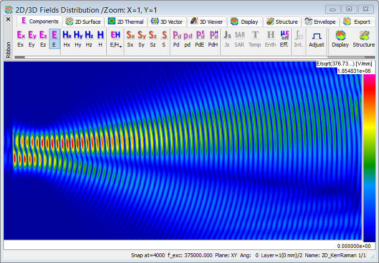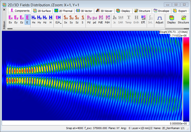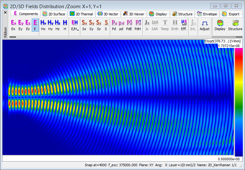 The present example considers 2D propagation in a dispersive material with Kerr and Raman nonlinearities.