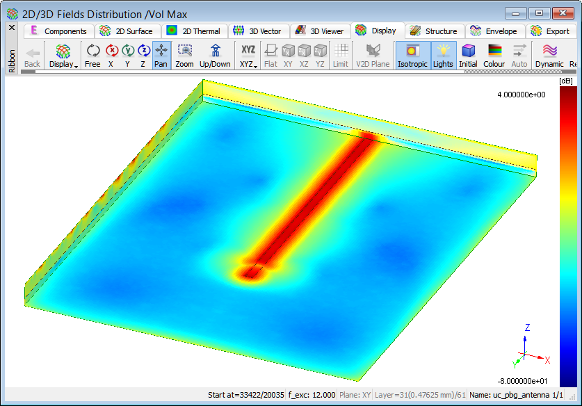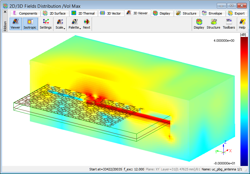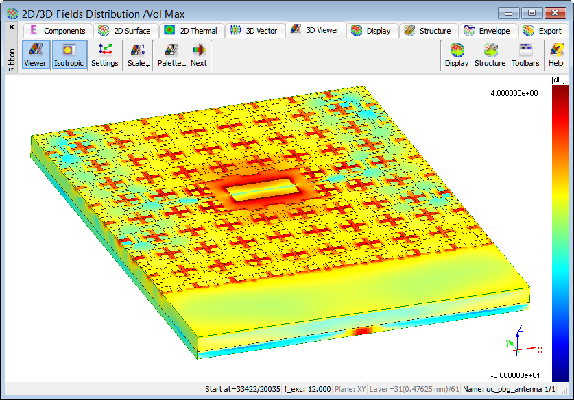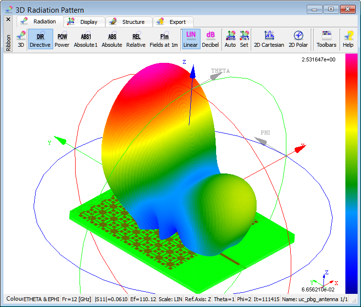 3D radiation pattern calculated at 12 GHz.