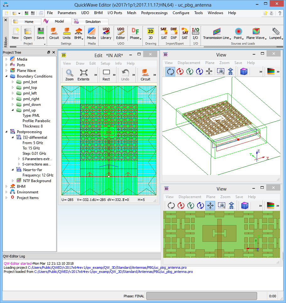 The aperture-coupled patch antenna project in QW-Editor.