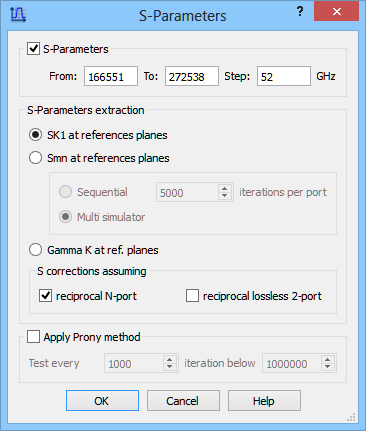 S-Parameters postprocessing configuration dialogue.