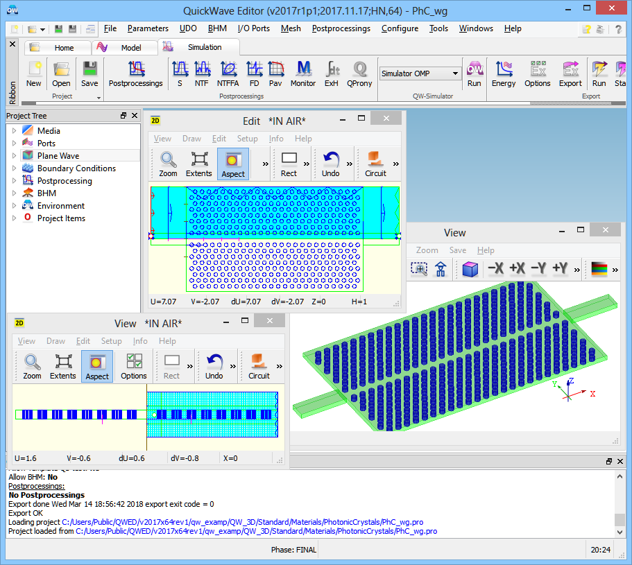 2D photonic crystal waveguide project in QW-Editor.