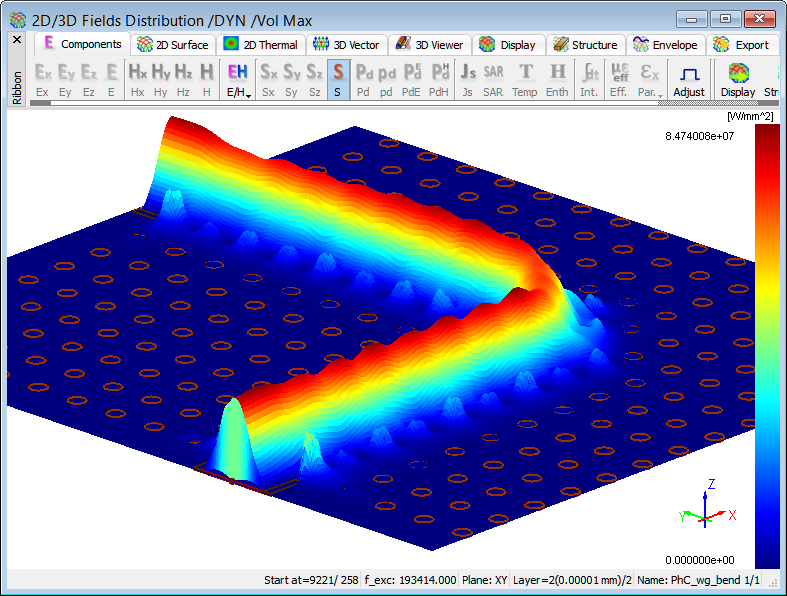 Distribution of time-maximum envelope of Poynting vector at 193.414 THz (λ = 1550 nm).