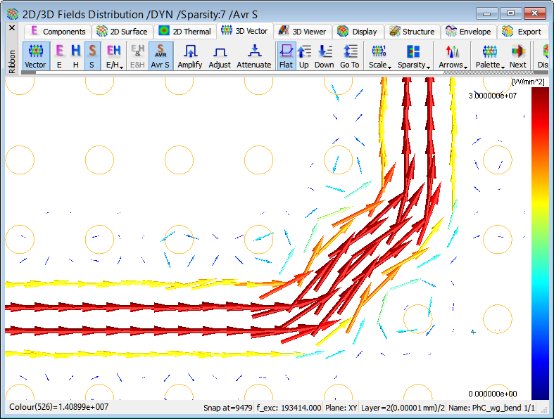 Vector display of time-maximum envelope of Poynting vector at 193.414 THz (λ = 1550 nm).