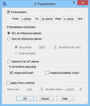 S-Parameters postprocessing configuration dialogue.
