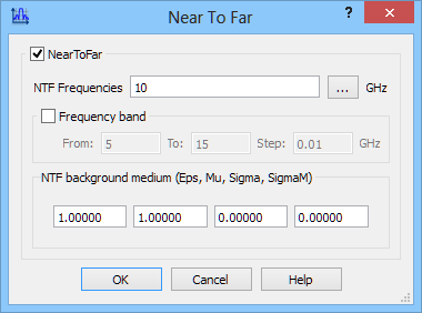We can set the reference point or in other words the origin of the coordinate system for the NTF transformation. The position of the reference point does not influence the absolute values of the radiation patterns (in lossless NTF background medium) but it does influence their phase characteristics. Moving the reference point can be helpful in a search for the antenna electrical centre. The reference point position is expressed in the same coordinates and units as those used in the project and defined in user input interface. To recall what units have been used, we can just take a look at the title bar of the window. In the considered example we see Units: mm.