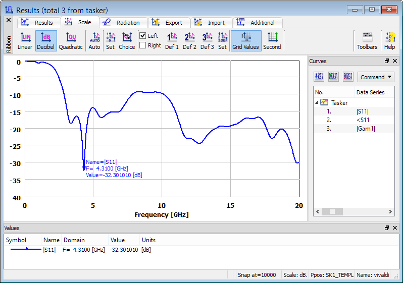 The S-Parameters postprocessing is set from 0 GHz to 20 GHz with the frequency step of 0.01 GHz.