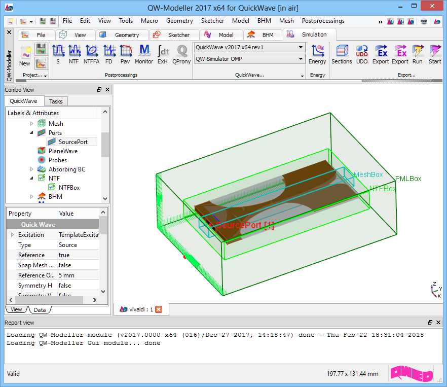 Balanced antipodal Vivaldi antenna project in QW-Modeller.