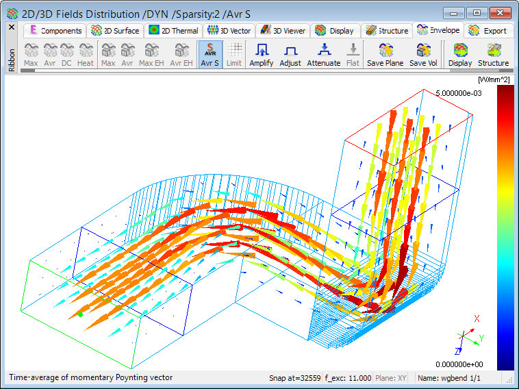 Distribution of time-average of momentary Poynting vector at 11 GHz.