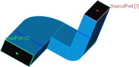 The structure is a 22.86 mm x 10.16 mm waveguide with two bends, first one in E-plane and the second one in H-plane.