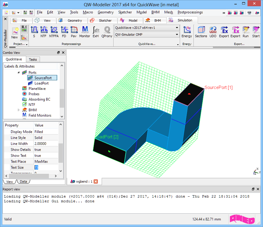 Waveguide bend project in QW-Modeller.