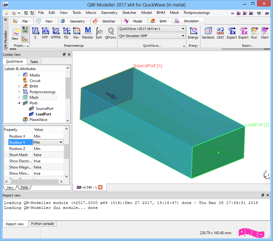 Rectangular waveguide WR-340 project in QW-Modeller.