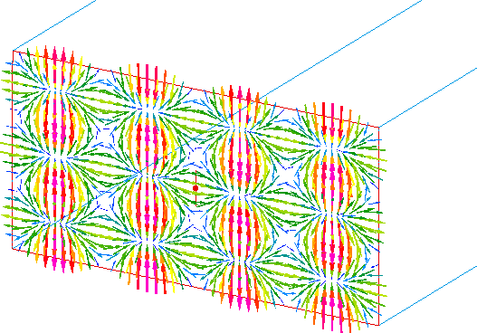 Vector display of magnetic field distribution for TM43 mode in a cross section of rectangular waveguide (ZY plane).