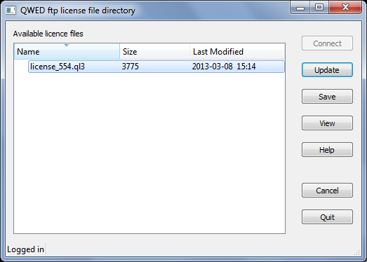 3. Select an appropriate file from the list of the license files (for example for the dongle marked as QW-554 on the dongle sticker, the file would be: license_554.ql3) and press Update