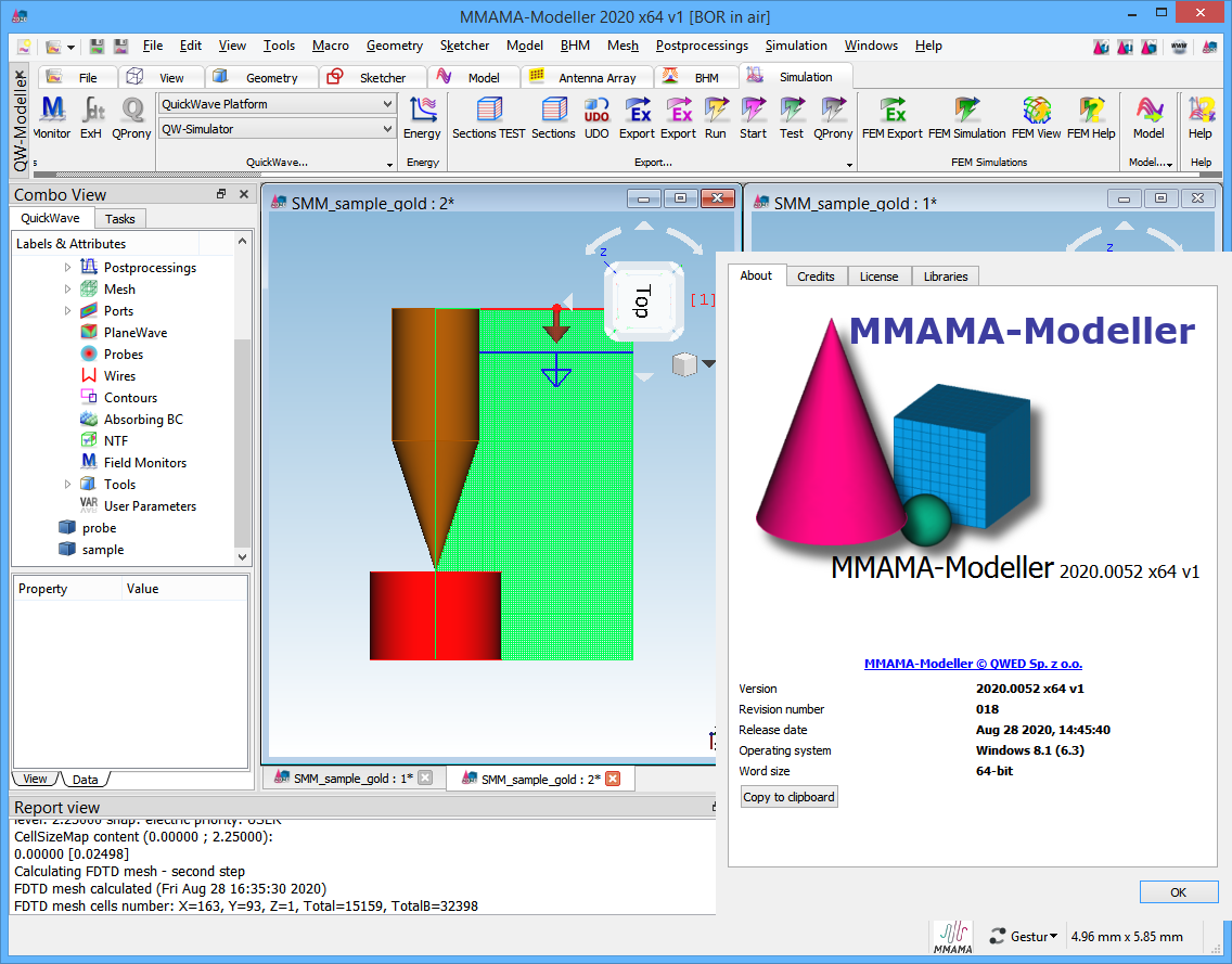 MMAMA Open Platform video - electromagnetic analysis of SMM probe over a material sample performed in QuickWave EM software launched from MMAMA-Modeller: