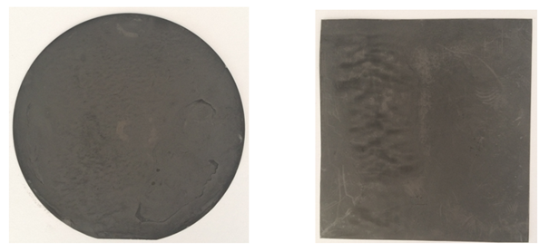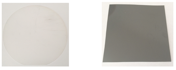 Two graphene-based composite samples deposited on reference materials (on quartz – left; on polymer – right), manufactured by PLEIONE.