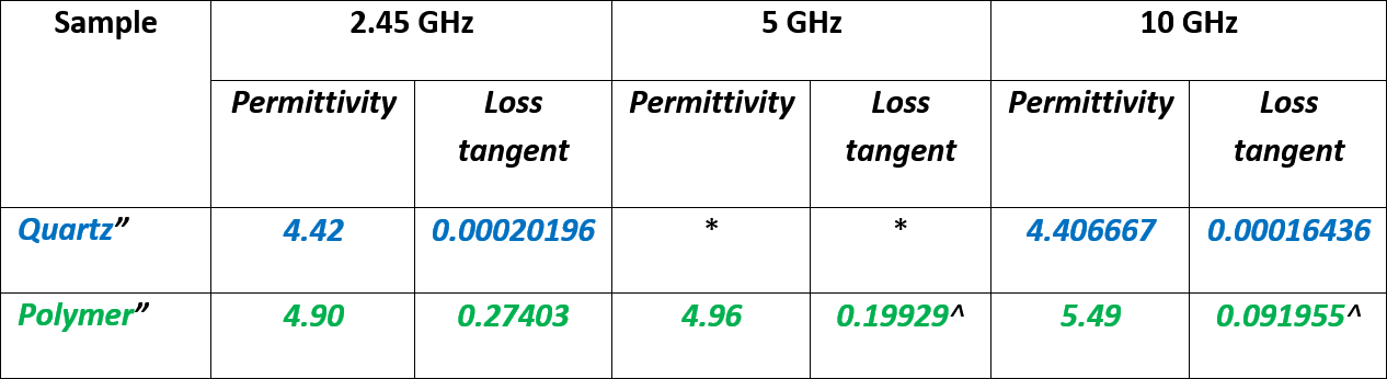 Table 1. Electric permittivity and losses of quartz and polymer material samples measured with SPDRs at different frequencies.