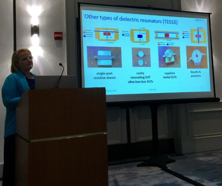 Dr. Malgorzata Celuch (President of QWED) presents "Modelling-based methodology fo downscaling dielectric resonator material measurements of material surfaces".