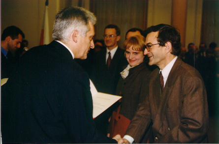The attached photos show Poland's Prime Minister Jerzy Buzek congratulating the QWED team during the award ceremony.