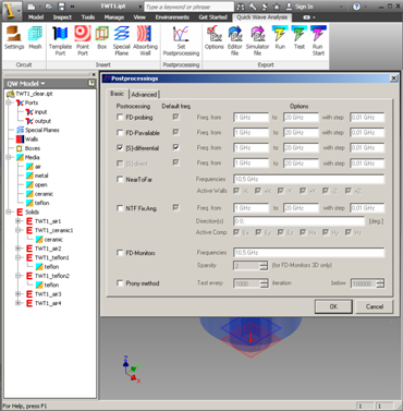 postprocessing tasks: S-parameters, antenna pattern, power available