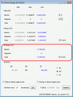 Calculate Time Integral is used to calculate the enthalpy by integration of the dissipated power over time. It can be turned on when one of the components: Pdiss/Pdens/PdissE/PdissM is chosen. This option is useful when we want to calculate the energy dissipated over the entire duration of a pulse of limited duration regardless of its spectral content.