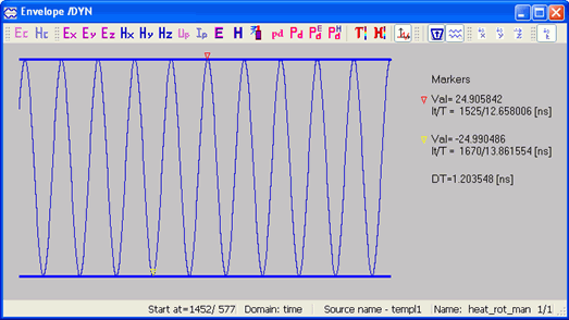 In version 6.5, we have greatly extended the application of 1D envelope window. Before we could only display the field components and currents/voltages at lumped sources/probes. Now we can also monitor time or space variation of total E and H fields, dissipated power, SAR, temperature and enthalpy (in QW-BHM), contour integrals in time domain, field distribution along predefined contours, and time-waveforms of excitation signals. The options are formally listed in Section S 2.5 and examples are available in Sections 2.13.4.