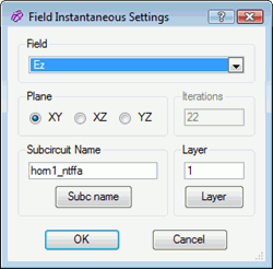 The instantaneous field of the chosen field component, in subcircuit S_NAME, in chosen Plane and <layer> will be saved to file F_NAME.
