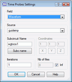 Time probes of the chosen component, in subcircuit S_NAME will be saved to files with consecutive tpd, tpd1, tpd2,… extensions. The files are saved in sub-directories of the project directory, and sub-directory name is qualified with the name of the component and system date at the moment of creating the subdirectory.