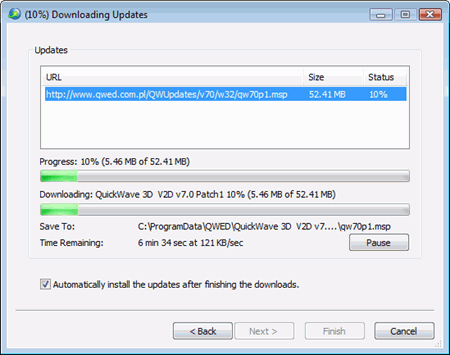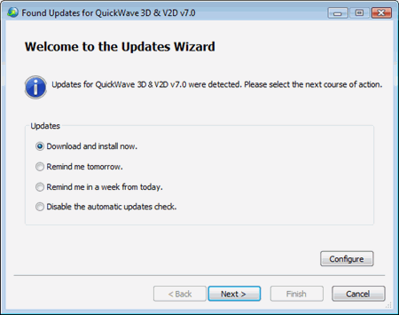 Automatic updates facilitate keeping QuickWave up to date. QuickWave includes an automatic updater that can check for, download, and install updates for QuickWave software.