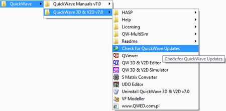 QuickWave updates commands in the Help menu of QW-Editor and QW-Simulator