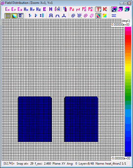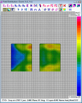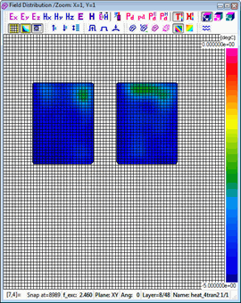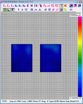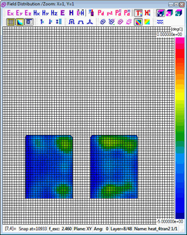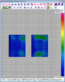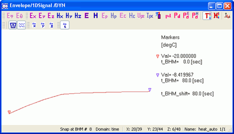 A standard View-Envelope function with Domain-Time displays physical quantities available in QW-Simulator versus the "electromagnetic" time being the duration of the on-going FDTD analysis. This is typically in nanosecond scale for signals in GHz frequency range and thus [ns] is used as a unit for the horizontal axis. This scaling is inappropriate for temperature and enthalpy, since they do not change at every FDTD time step, but only at each BHM (heating) time step. Thus a new scaling of time as "heating time" or "BHM time" has been introduced for temperature and enthalpy in version 7.5. The heating time, being the horizontal scale of the display, is now set in [sec] in the corresponding Position & Parameters dialogue.