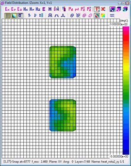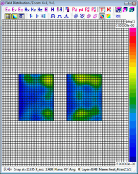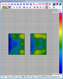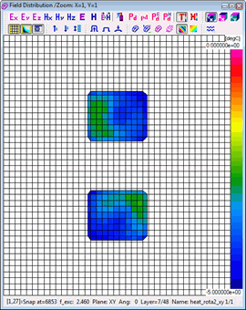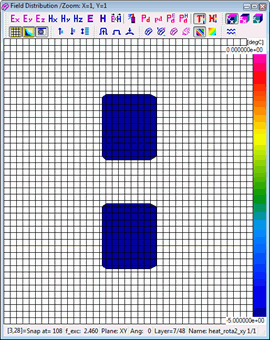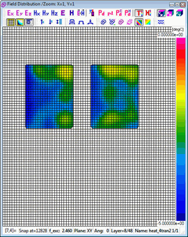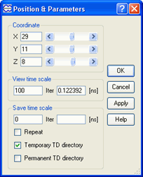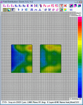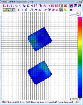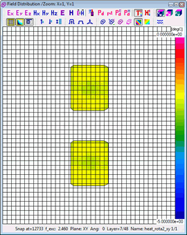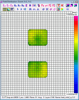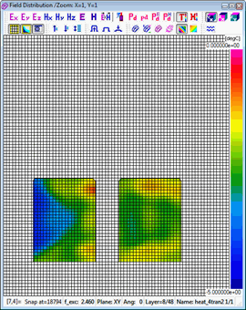 Resolution of the time scale is set to 0.1 sec by default and cannot be changed. Considering that the number of thermal time steps is typically much lower than the number of electromagnetic (FDTD) time steps, automatic saving options are not provided in this case. A history of temperature or enthaply can be saved to *.de3 file via Setup-Save as.. command. Heating time information is added to the standard *.de3 header.