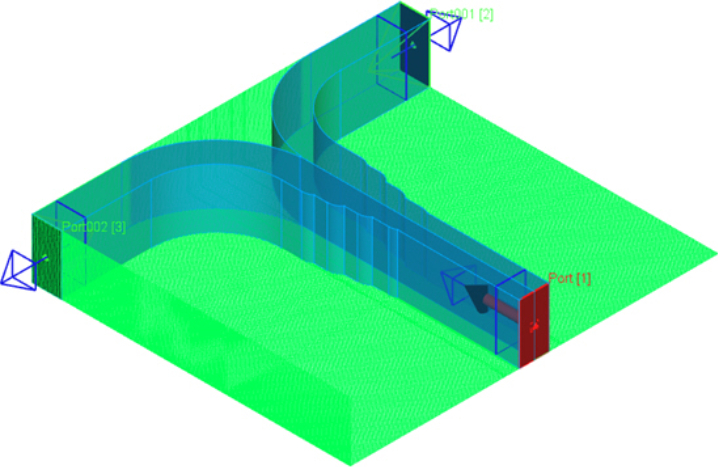 Model of WR-10 E-plane Y-junction designed in QW-Modeller.